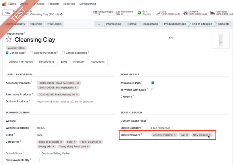 It is good practice to keep track of any recurring search words that did not generate any hits. You can use these terms and add them to your Elastic Keywords on suitable products to make sure you will get hits on these terms next time. This will give the customer a better shopping experience on your website.