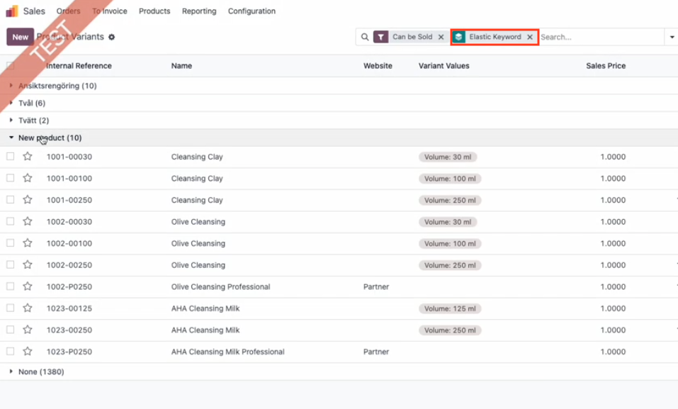 You can group by and filter on your Elastic Keywords in product variants list.