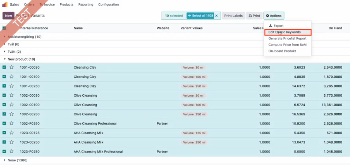You can also batch edit keywords on multiple variants at once. Select your variants and then go to Actions - Edit Elastic Keywords.