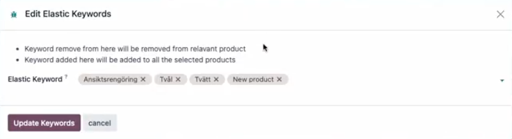 Elastic Keywords can be used to add specific search terms you want to use for specific products/variants, without having to add the terms to your product descriptions.